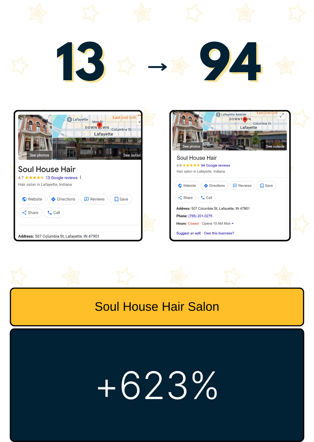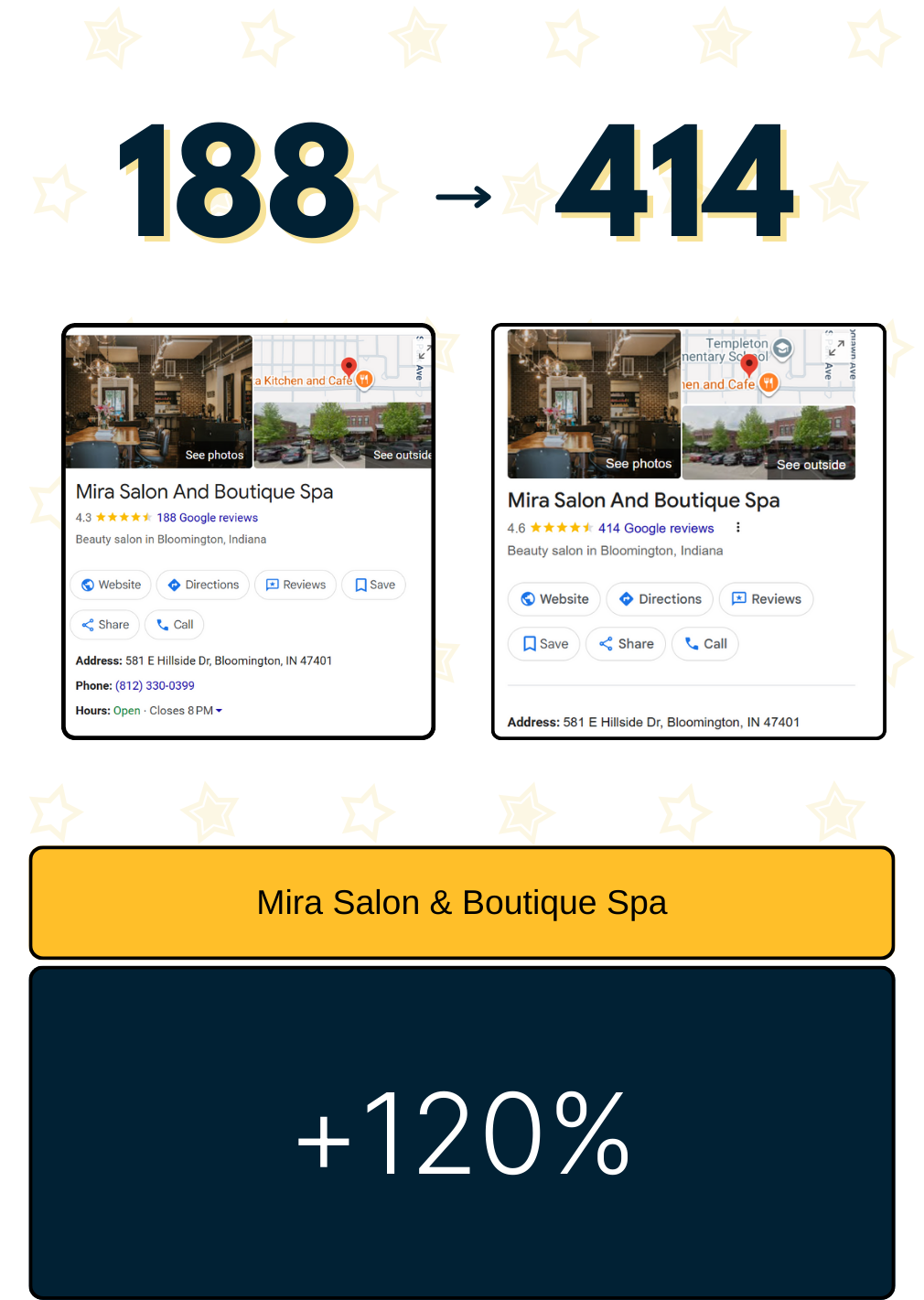 More reviews signal trust to Google — helping your salon rank higher in local search and stand out when clients compare options nearby